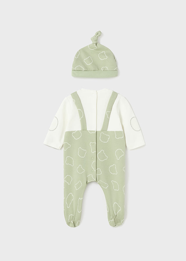 3er Set bestehend aus Strampler, Langarm T-Shirt und Jacquard Mütze